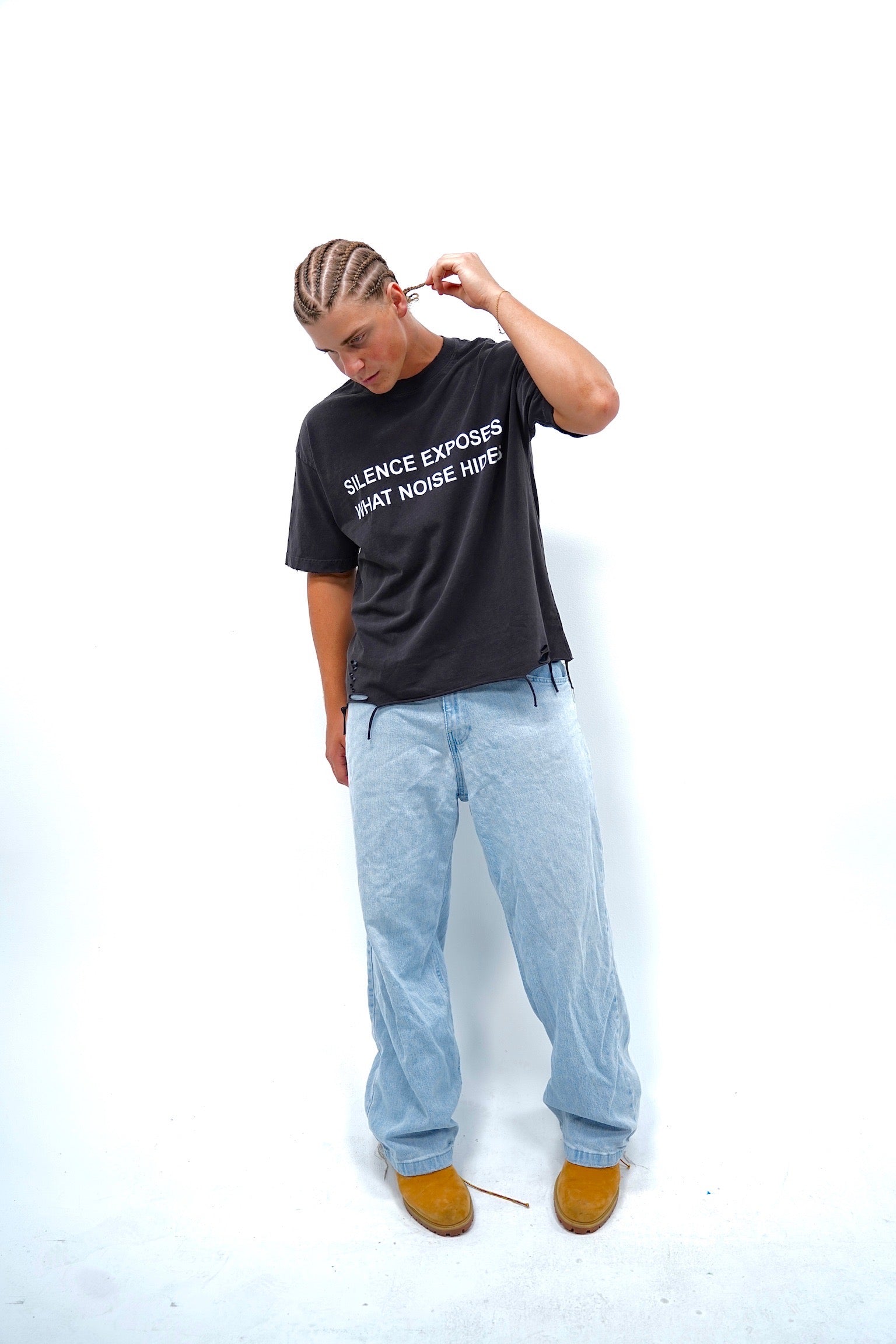 Sleek, rugged, and thought-provoking—this tee redefines everyday wear. Crafted from heavyweight 270 GSM fabric, it delivers top-tier durability while maintaining a smooth, premium feel that stands out at any price point. The distressed detailing gives it a raw, high-dollar aesthetic that’s in style and built to last.